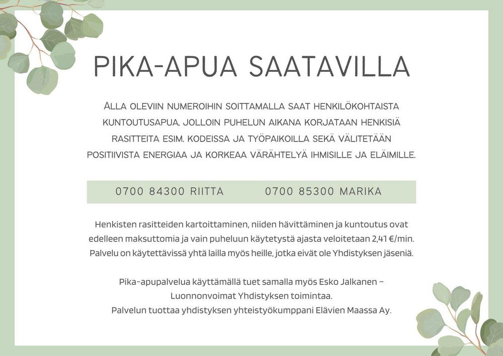 Huom! Kesä- ja joulutaukojen takia mitään palveluja ei ole saatavilla 1.-31.7 ja 19.12-6.1